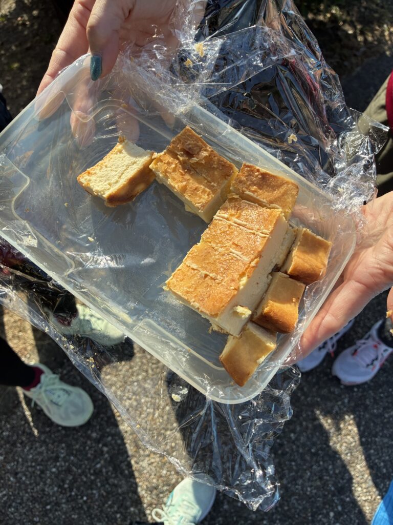 トレーニング終了後にはランニングクラブ会員さん手作りのレアチーズケーキ