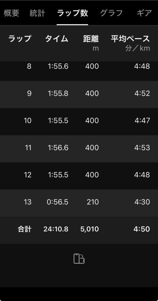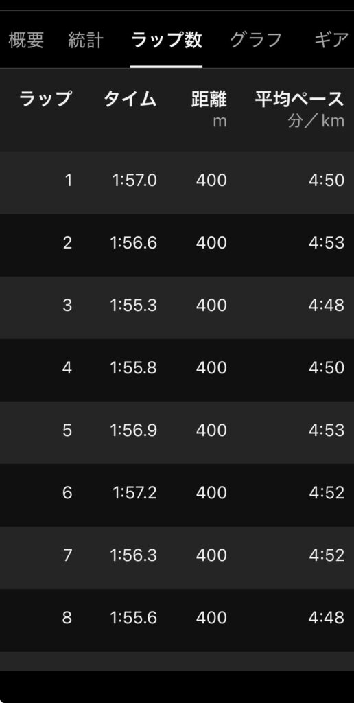 『あれっ!意外にいけるかも』って言うのはいつもの勘違いで400mトラックを1周した頃には現実に戻らされ3周目から4周目が1番キツいのよねー😭ここで少しでも弱気になるとズルズル置いていかれるから必死!もう必死!